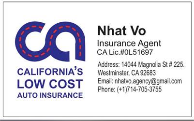 BẢO HIỂM XE: Chương trình bảo hiểm xe của chính phủ California dành cho người low income. Giá $418/1 năm. License#OL51697. L/L 714-705-3755.